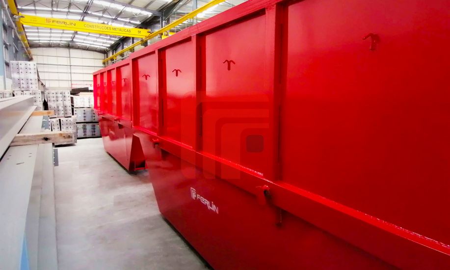 Contentores Multibenne com taipal, com capacidade de 8 a 12m³. Processo de Construção integrado no Sistema de Gestão da Qualidade de acordo e certificado pela norma ISO 9001:2008 e Soldadores com Certificado de Qualificação de Soldador.