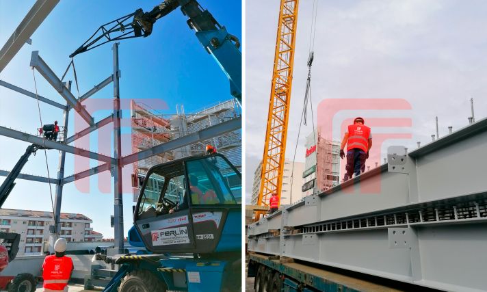 Pré-fabricação de Estruturas metálicas em EXC3 e montagem em obra. Projeto com uma área total 45.000m2 e 2.000 toneladas executadas em Consórcio.